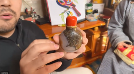 まずは遊牧民の伝統である嗅ぎタバコで挨拶します。容器のふたはサンゴでできているそうです。